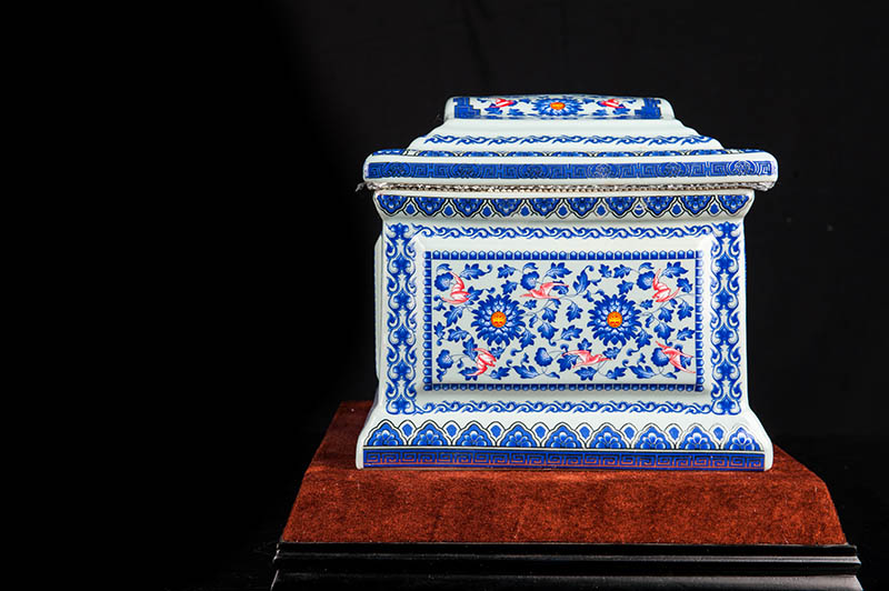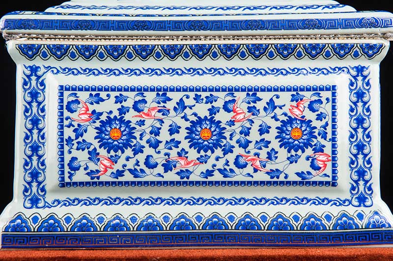 這款【福在眼前】產(chǎn)品沿用我們瓷都“景德鎮(zhèn)”具特色的青花,還有古代皇帝才能用的黃色作為底色,“纏枝蓮”、“蝙蝠”、“永生花”作為點(diǎn)綴,整體給人感覺特別典雅以及文藝。產(chǎn)品上繪上“蝙蝠”(寓意福到)盒“永生花”(寓意生命的永恒、眼睛的形狀)顧名思義“福在眼前”。尺寸:300x230x210mm