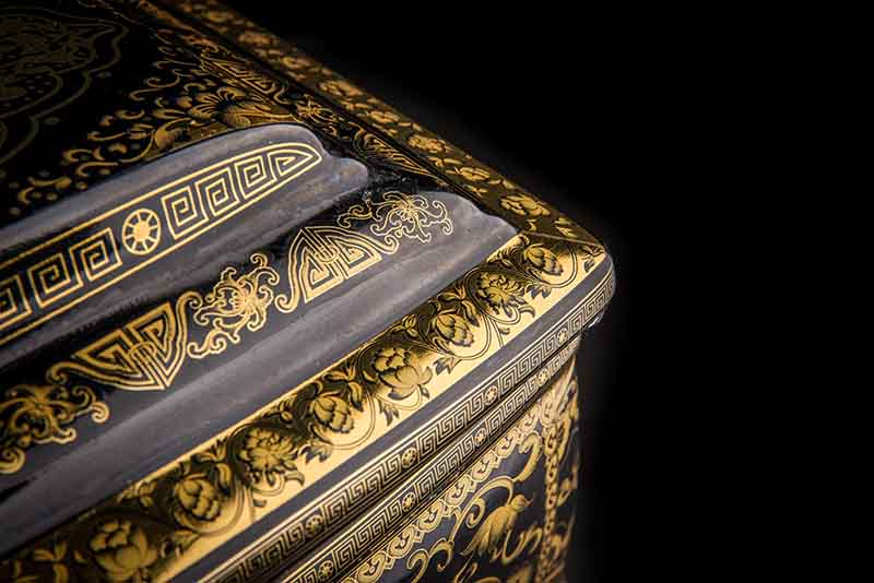 這款【黑釉福滿(mǎn)堂】產(chǎn)品,我們可以看到整體器型大氣磅礴,圖案典雅精致,1300度高溫煅燒,巧妙運(yùn)用黑色作為底色,搭配描金,大氣而不失精致,莊重而不失典雅。福滿(mǎn)堂象征著‘福星高照’,有著招財(cái)?shù)淖饔茫軌蚺d旺家里的財(cái)運(yùn),事業(yè)順利、節(jié)節(jié)高升!尺寸:345x250x250mm