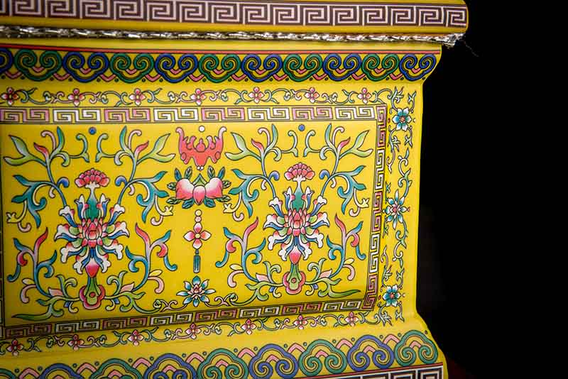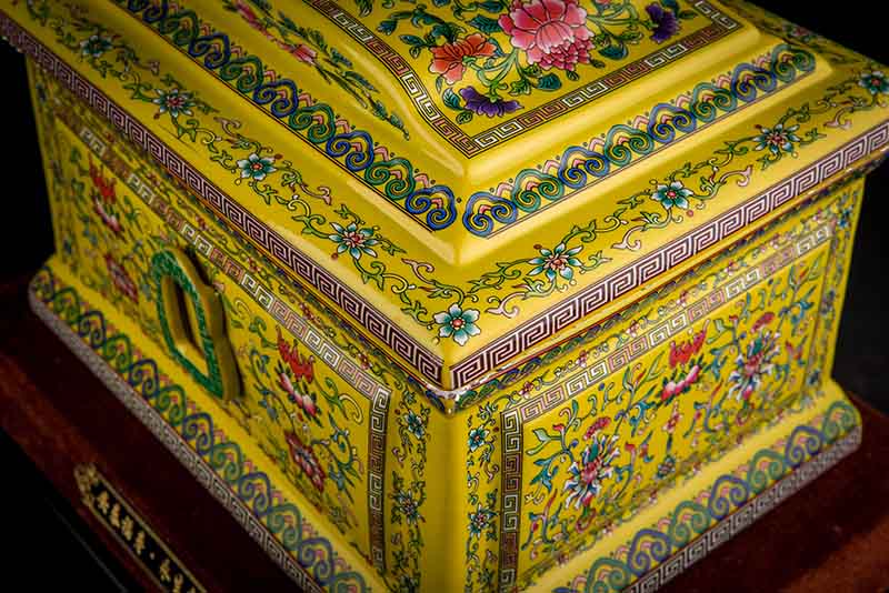 這款【吉祥如意】系列產(chǎn)品,目前有幾種顏色釉系列,黃、藍(lán)、紅、以及黑。這款產(chǎn)品運(yùn)用中國古代傳統(tǒng)的吉祥紋飾—“纏枝蓮”?!袄p枝蓮”常運(yùn)用在陶瓷作為點(diǎn)綴,因其結(jié)構(gòu)連綿不斷,故又具“生生不息”之意,同樣保后代代代繁榮。尺寸:300x230x210mm