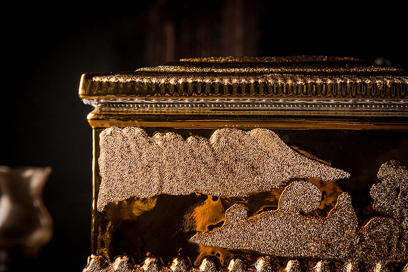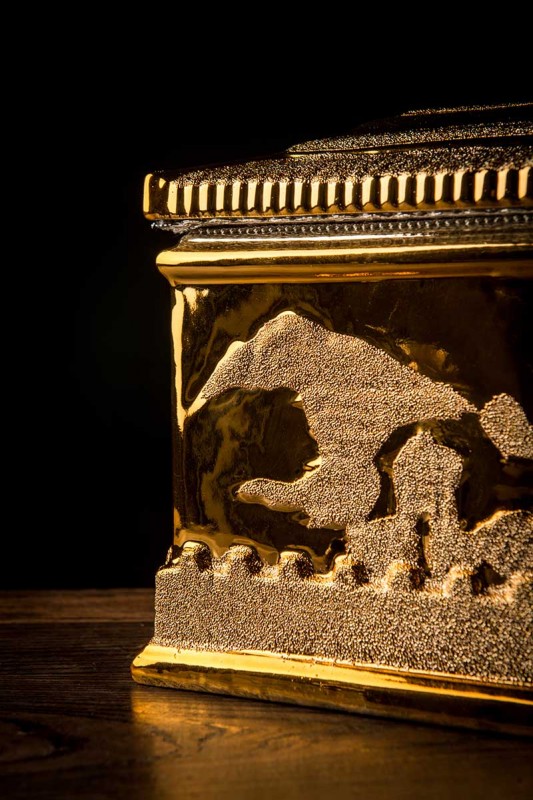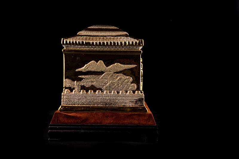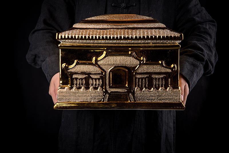 這款【磨砂金金寶盒】整體質(zhì)感出眾,看上去就是富麗堂皇,大氣,同樣是1300高溫煅燒,既有磨砂金的質(zhì)感,又有陶瓷那種光滑如肌的觸感,檔次,品質(zhì)自然而然就能很好的凸顯。這款【磨砂金金寶盒】正面是故宮造型,背面是山,寓意富麗堂皇,子孫后代今后事事有靠山,事事如意。尺寸:360x250x270mm(大)300x230x210mm(?。?/p>
