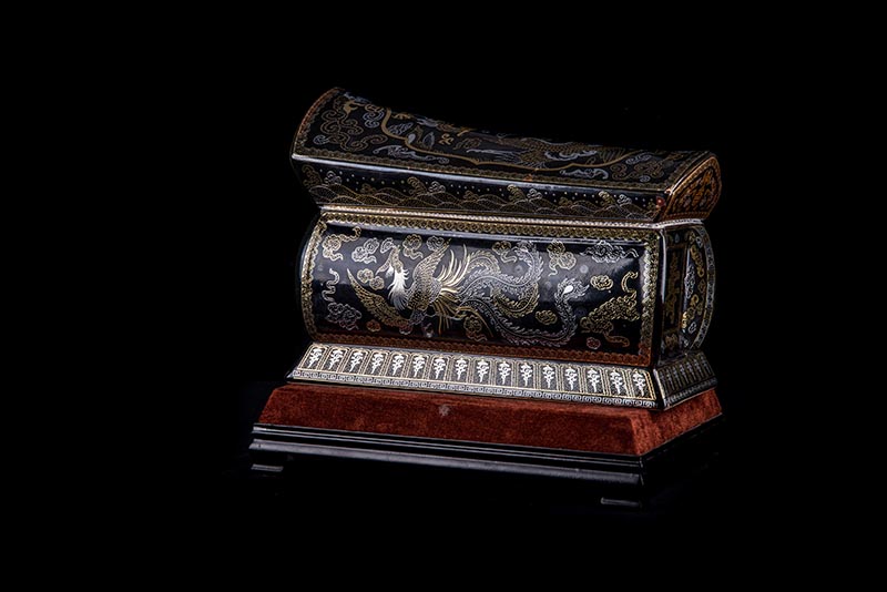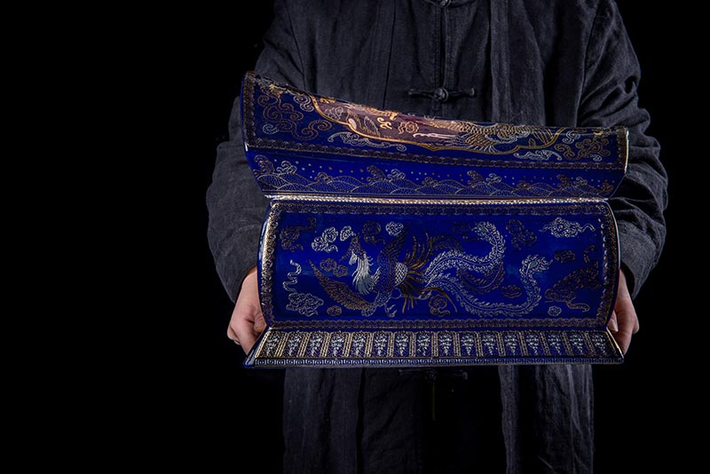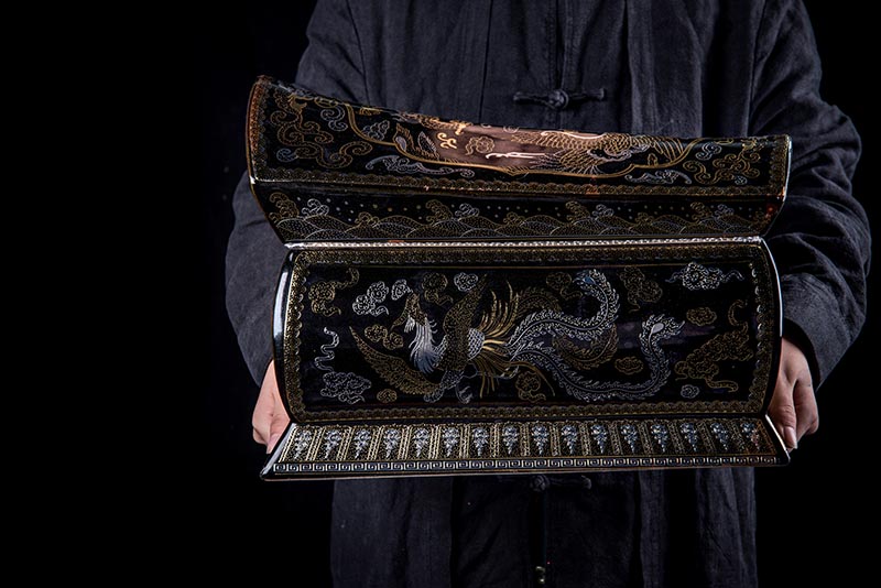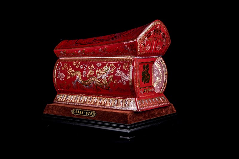 這款【金銀龍鳳】系列產(chǎn)品器型是傳統(tǒng)的長棺造型,古人常說:見棺者,升官發(fā)財,可見它的美好寓意。我們可以看到這款產(chǎn)品,一面龍,一面鳳,素有“龍鳳呈祥”一說,采用的是“錯金銀”工藝,它是中國非物質(zhì)文化遺產(chǎn)名錄的一項美麗的藝術(shù),源自于“春秋戰(zhàn)國時期”至今已經(jīng)2000多年,把這種精湛工藝運用到我們永生盒,既是傳承,亦是發(fā)揚!尺寸:400x220x290mm