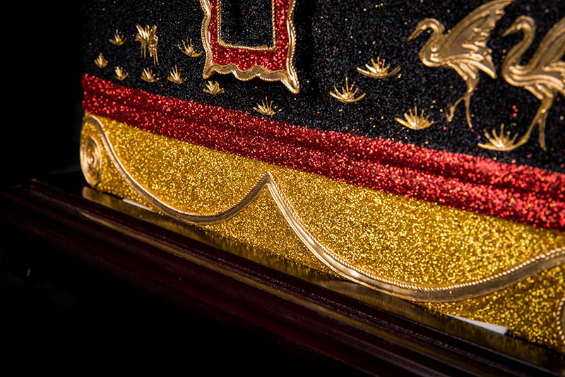 產(chǎn)品特征:24K金線漆線雕工藝,具特色的傳統(tǒng)民間手工藝精品,精細(xì)雕刻,線條流暢,顏色搭配簡(jiǎn)約大氣,松鶴延年圖案更是寓意福壽延年。